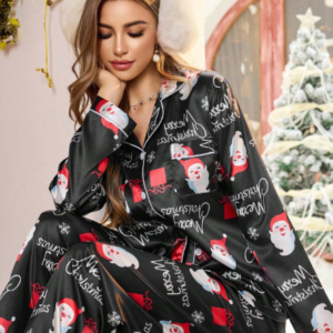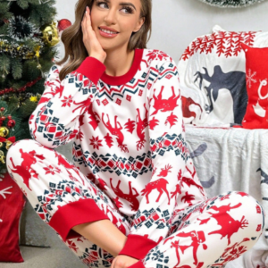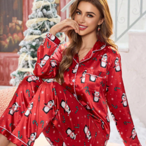 Pijama navideña con estampado de pingüinos y bastones de caramelo