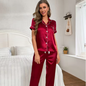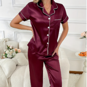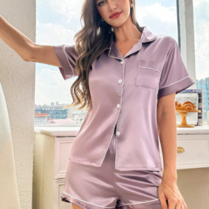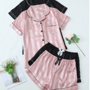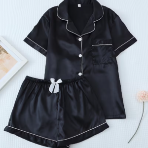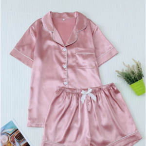 Pijama satinada con camisa de botones y pantalon corto