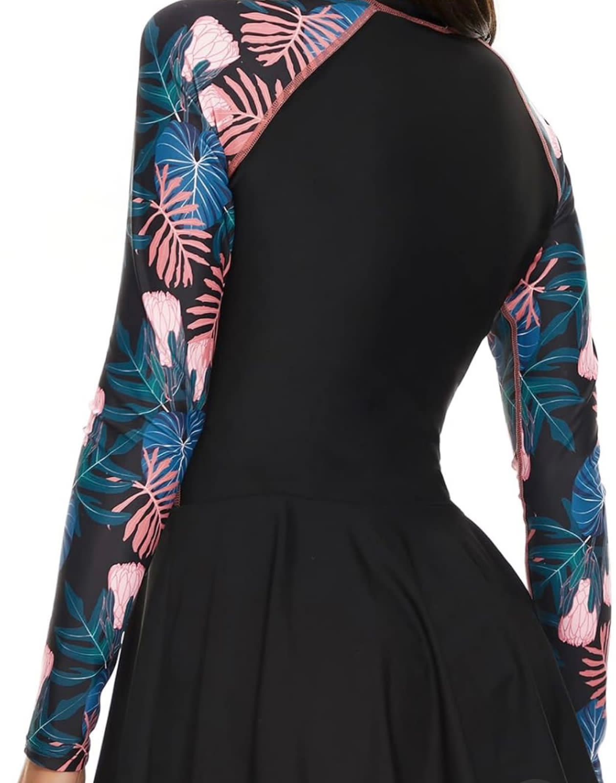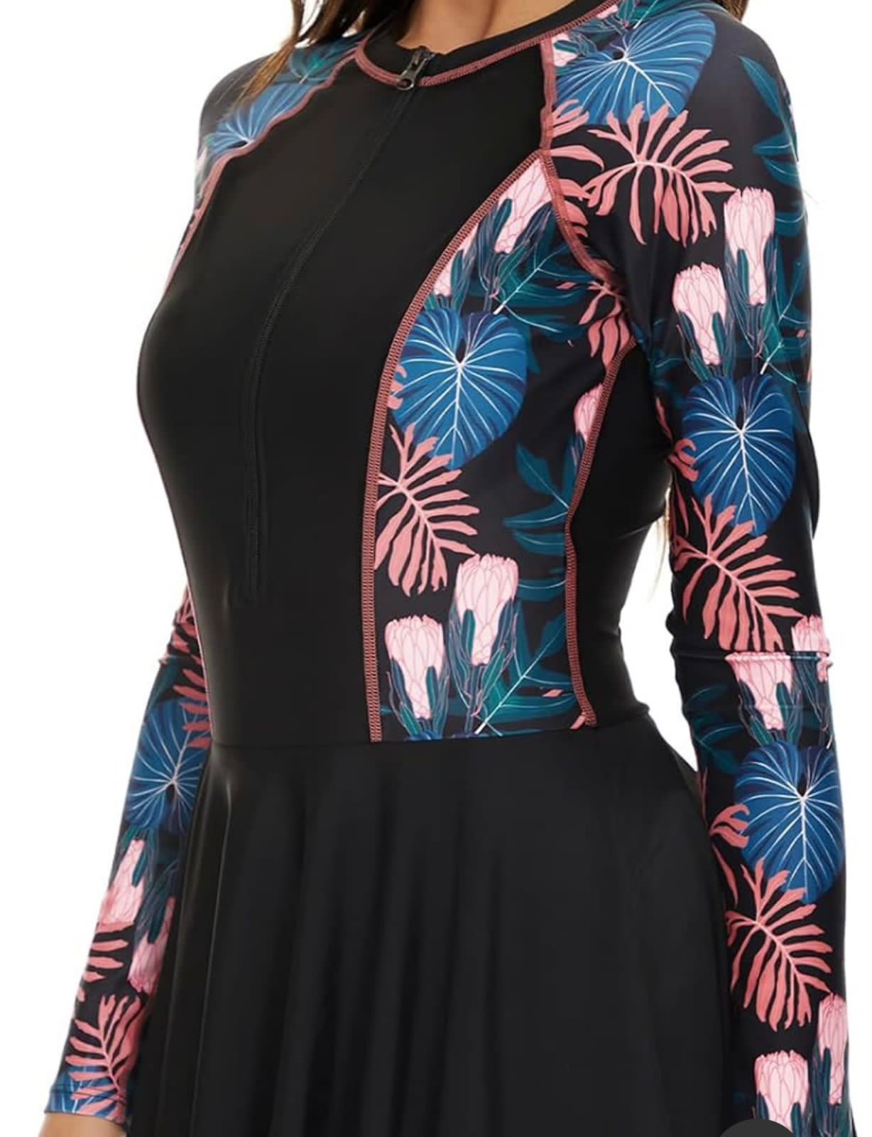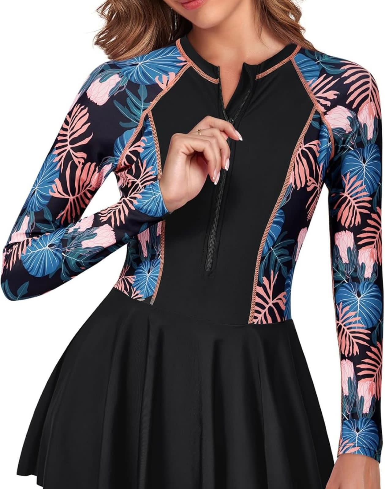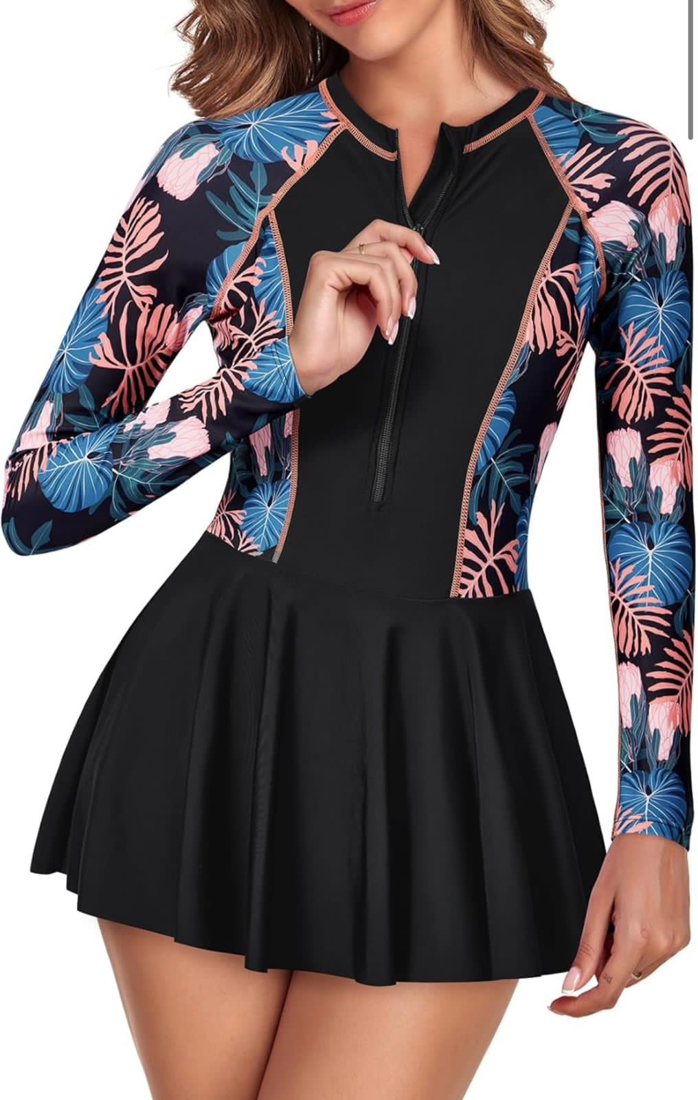 Traje de baño de una pieza con cremallera, manga larga & falda